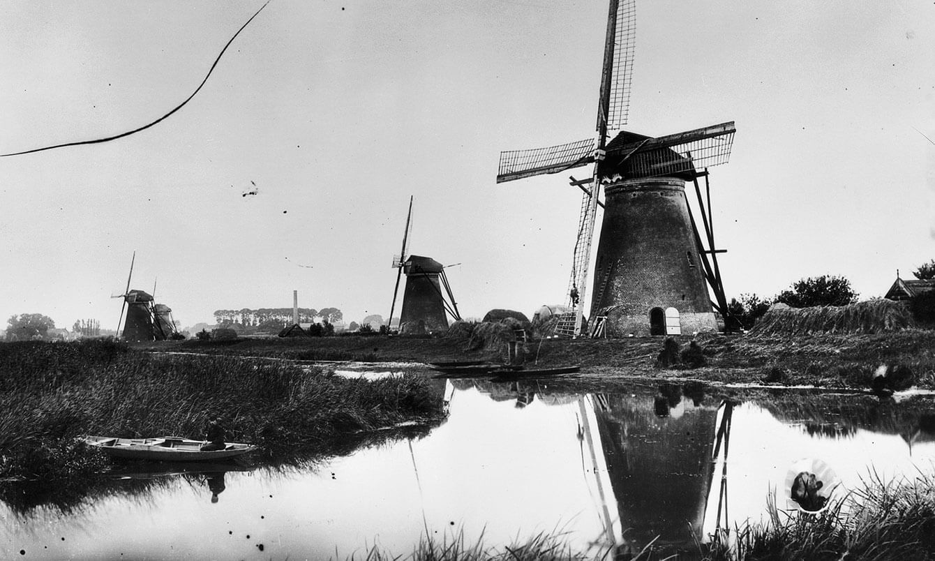The first water-drainage mills were built in the Alblasserwaard, the region around Kinderdijk in the province of Zuid-Holland. These water-regulating mills played a crucial role in pumping away the water to drain the land and controlling the water in this low-lying region. It marked an important stage in Dutch water management that is still visible in the landscape today.